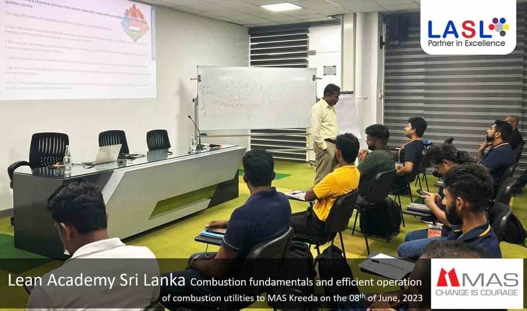 On 7th June 2023, Lean Academy Sri Lanka, in collaboration with MAS Kreeda, proudly organized a groundbreaking Combustion fundamentals and efficient operation program aimed at revolutionizing workplace safety practices. This enlightening event featured an exceptional lecture delivered by the esteemed Dr. Sabarathna, renowned for his expertise in industrial Combustion fundamentals and efficient operation. The program not only served as a platform to enhance safety awareness but also showcased the commitment of Lean Academy Sri Lanka and MAS Kreeda towards creating a secure and conducive work environment.